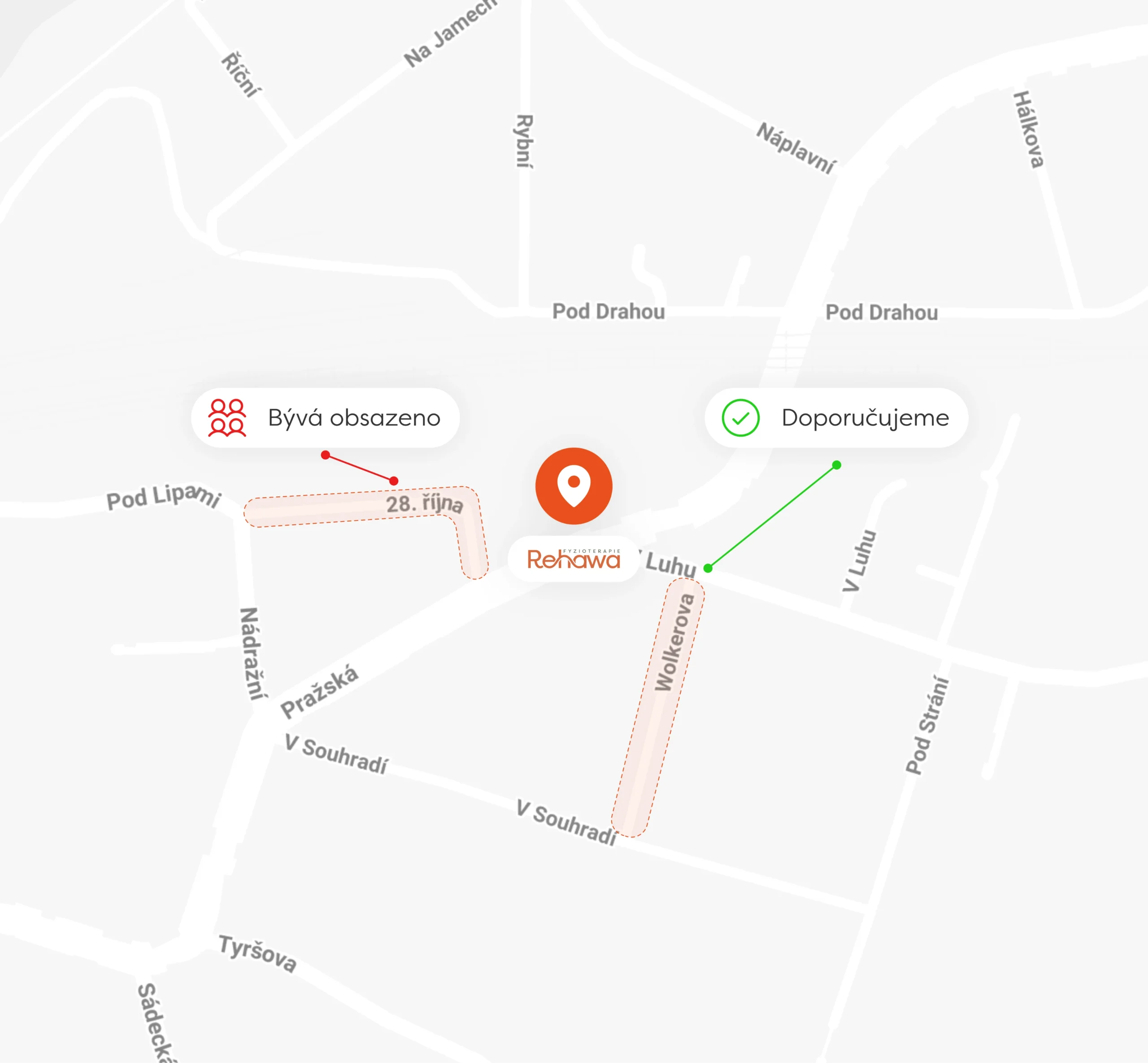Parkování je možné v ulici Wolkerova (doporučujeme) nebo v ulici 28. října (bývá obsazeno).